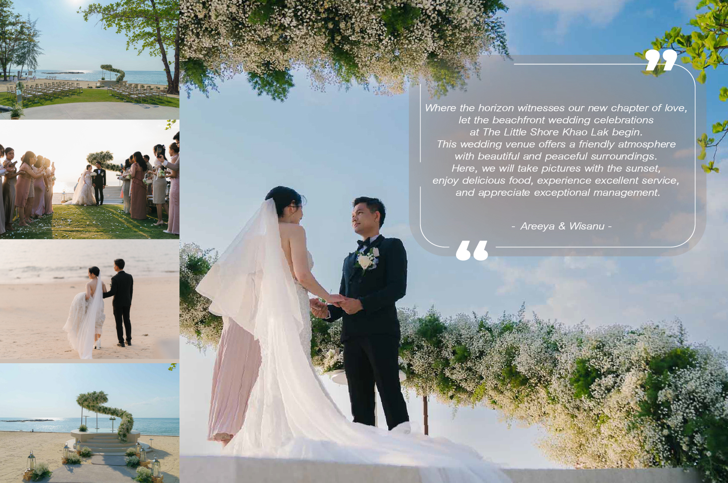 "Introducing 'The Happily Ever After' Seaside Wedding Package, where your love story meets the breathtaking beauty of the sea. At The Little Shore at Khao Lak, we specialize in crafting unforgettable moments, and your wedding day should be nothing short of magical.